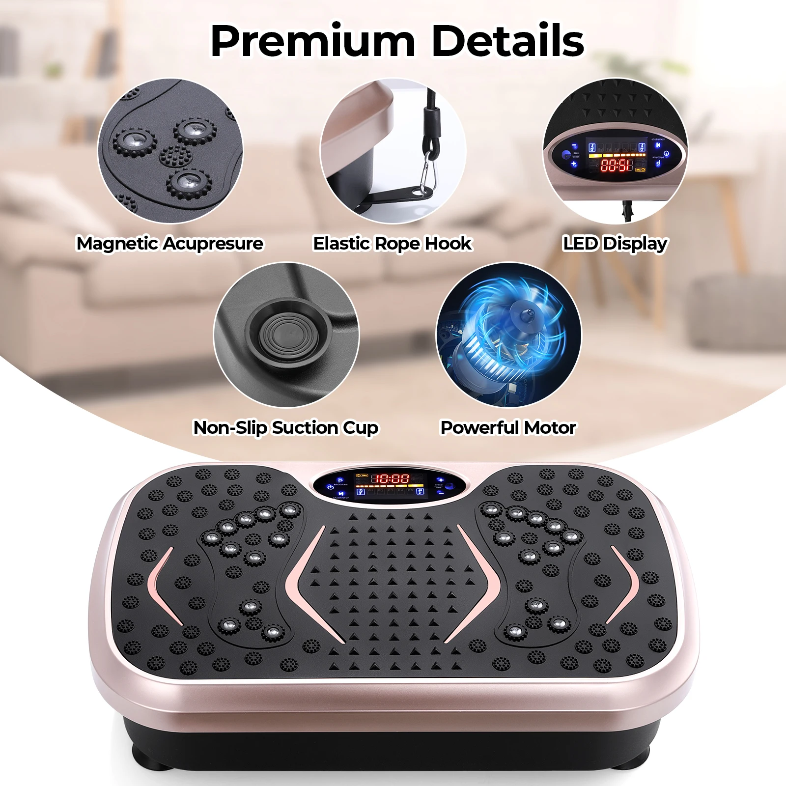 • Adjustable vibration speeds for customized workouts